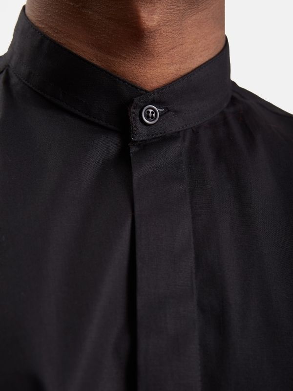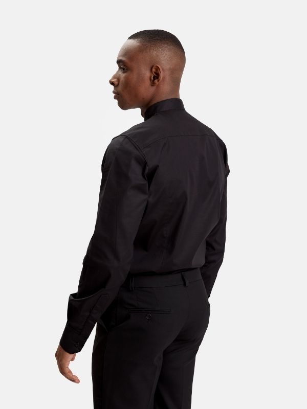 Camisa lisa, confeccionada en 97% algodón y 3% elastán, que proporciona elasticidad y confort. Corte Slim Fit, que se ajusta ligeramente al cuerpo. Cuello mao y botonadura frontal oculta mediante tapeta. Puños sesgados con cierre de un botón.