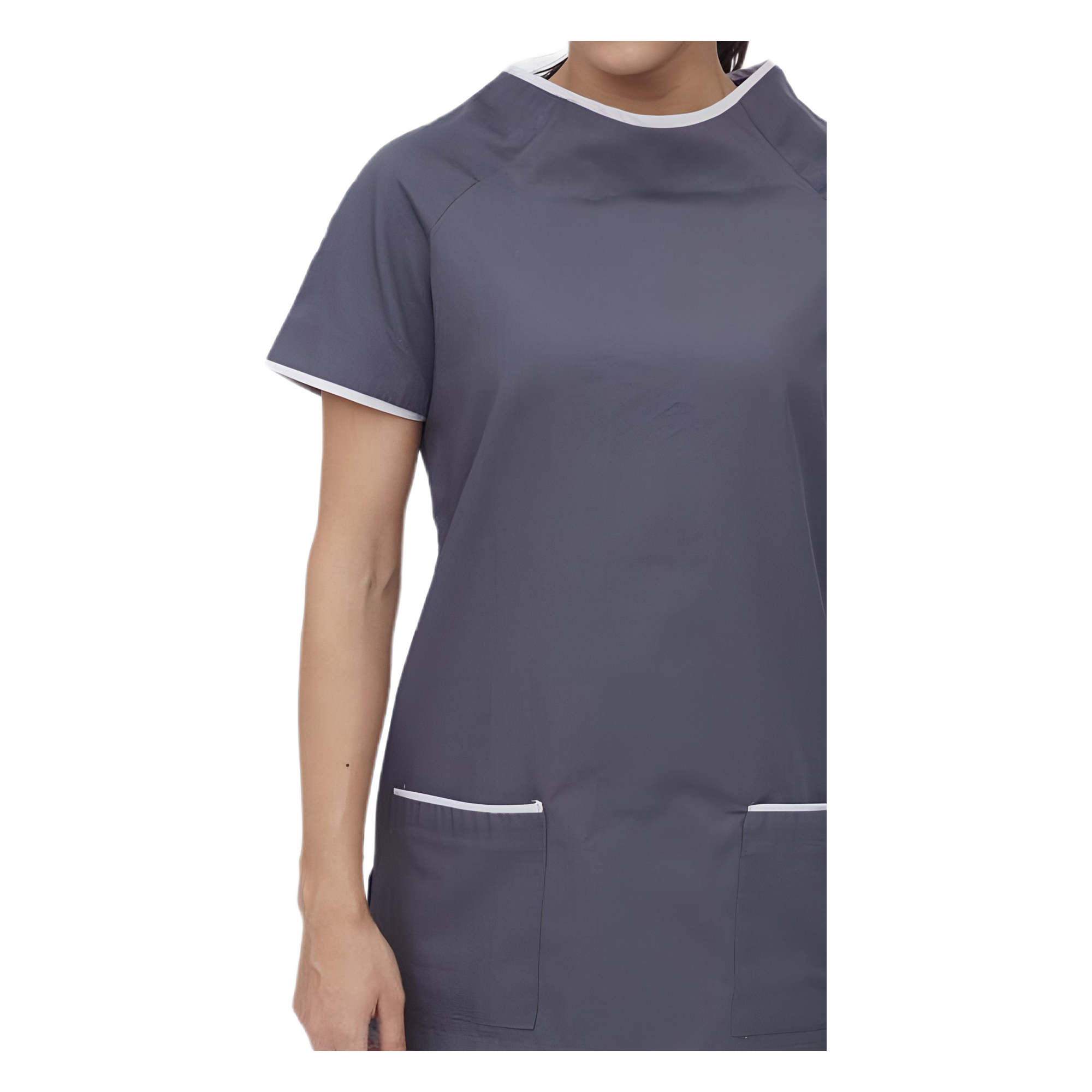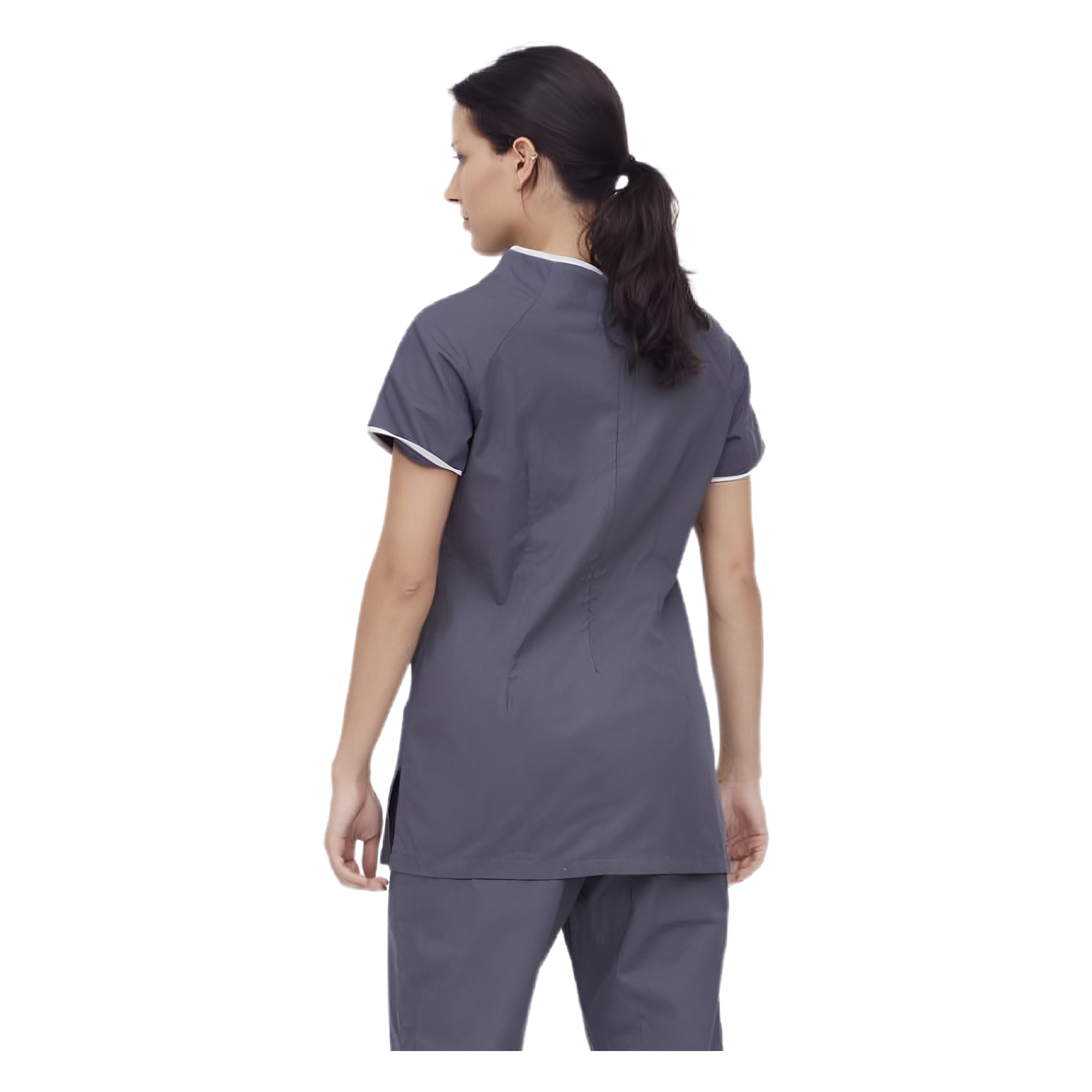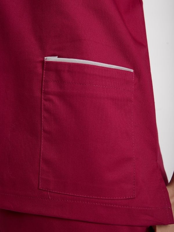 Casaca con cuello chimenea, confeccionada en 59% algodón, 39% poliéster y 2% elastán, que combina comodidad, elasticidad y durabilidad. Su tejido mixto permite libertad de movimiento y transpirabilidad, ideal para el uso diario en entornos profesionales. Disponible en burdeos, fucsia, gris claro, gris oscuro y marino, ofreciendo variedad de colores para adaptarse a cualquier estilo o uniforme con un acabado moderno y elegante.