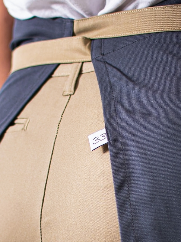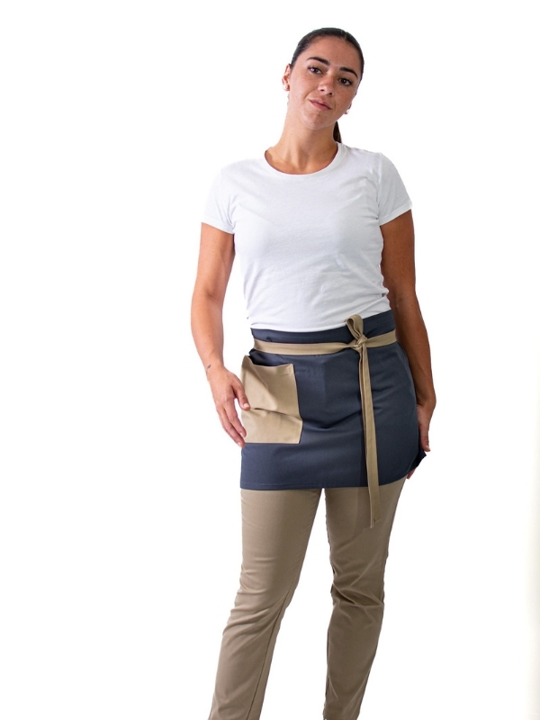 Mandil Corto Bicolor, confeccionado en una mezcla de 65 % poliéster y 35 % algodón, que garantiza resistencia, confort y fácil mantenimiento. Su diseño moderno y equilibrado combina funcionalidad con un toque distintivo gracias a su acabado en dos versiones bicolor: