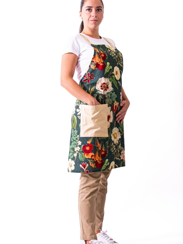 Con un largo de 83 cm, ancho de 66 cm y espalda cruzada garantiza una cobertura cómoda y libertad de movimiento. Una opción versátil y actual, perfecta para añadir color y frescura al entorno laboral.