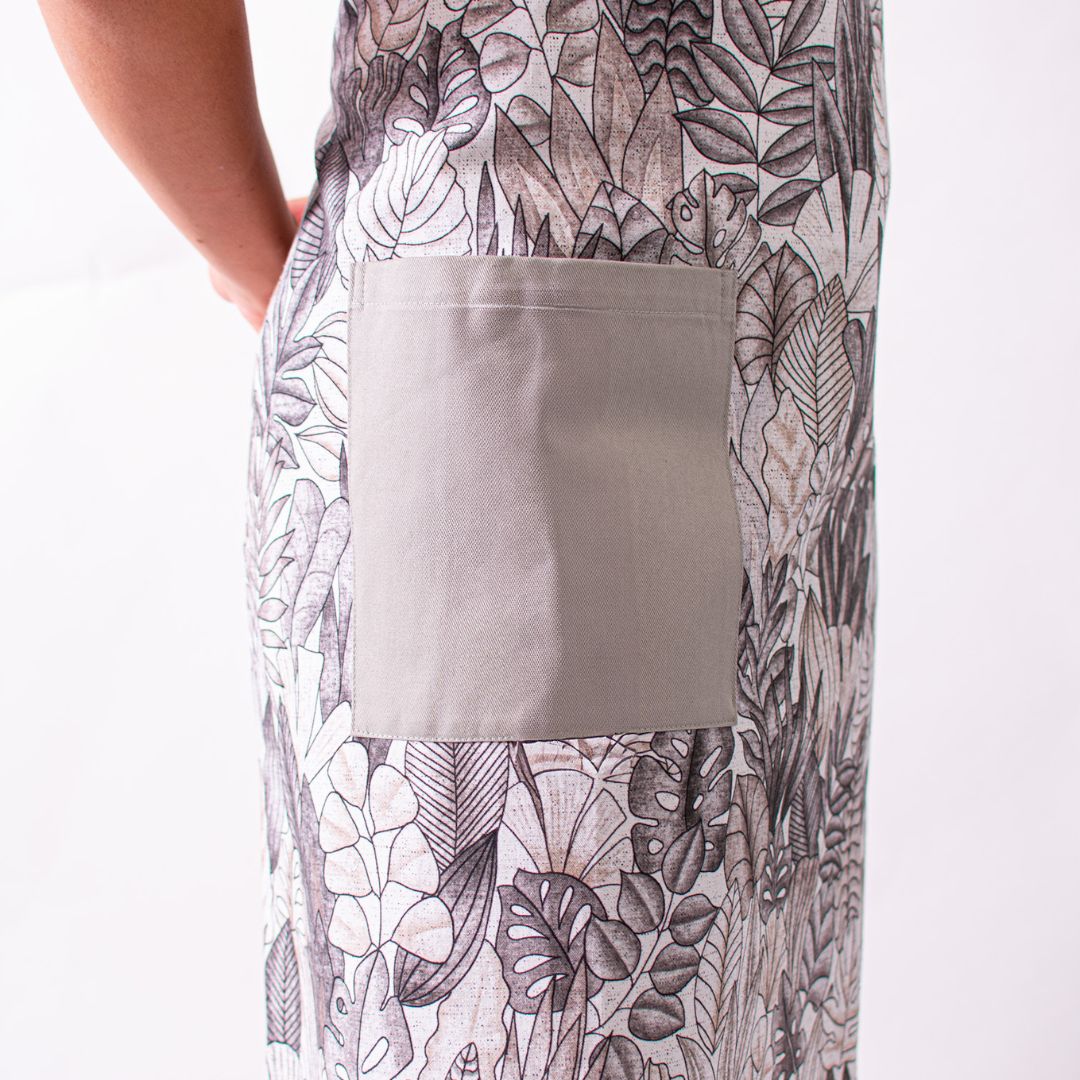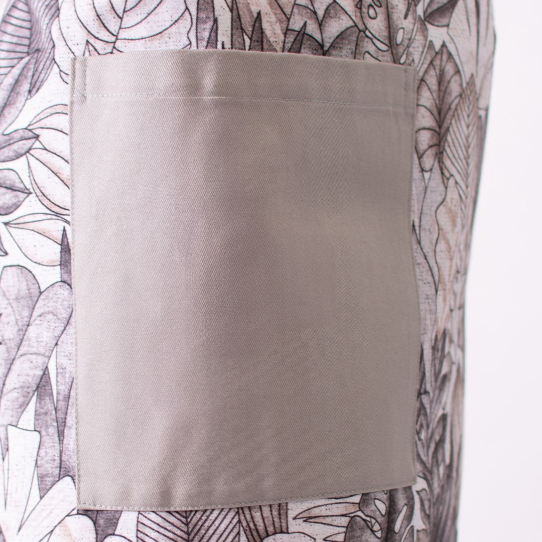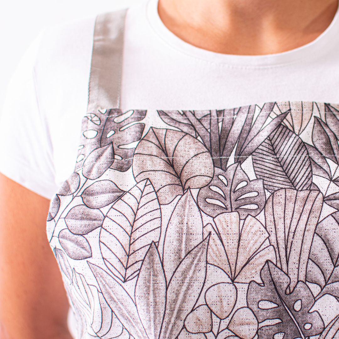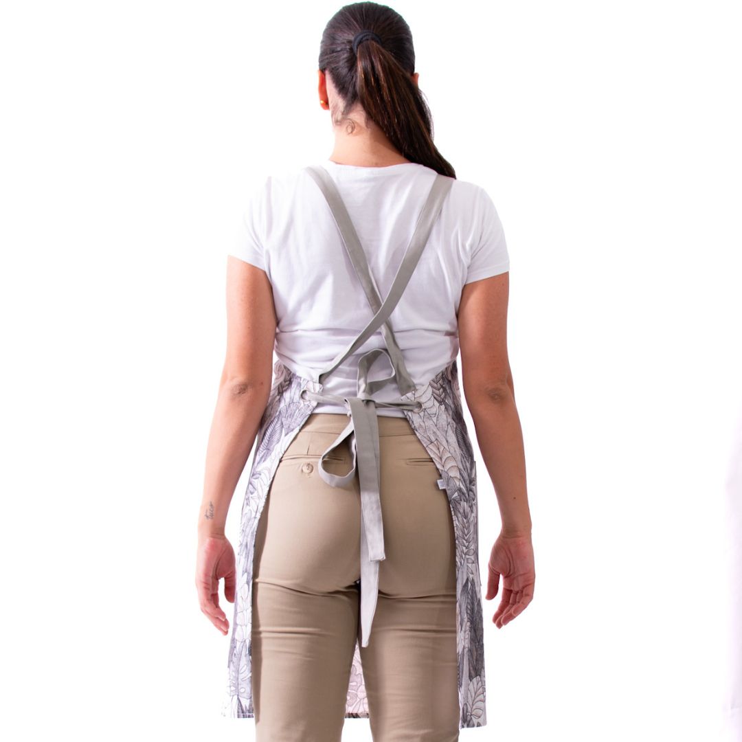 Peto Hojas, confeccionado en 100 % algodón, un tejido natural que garantiza comodidad, transpirabilidad y suavidad durante toda la jornada. Su diseño con estampado de hojas y detalles en gris claro aporta un estilo fresco y equilibrado, ideal para entornos profesionales que buscan un toque natural sin perder elegancia. Con un largo de 83 cm, ancho de 66 cm y espalda cruzada, ofrece una cobertura cómoda y libertad de movimiento. Una prenda versátil, práctica y con carácter, perfecta para quienes valoran el confort y el diseño en su día a día.